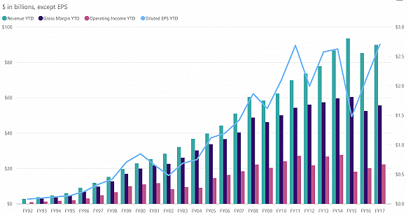 就在7月初,在华盛顿特区召开的2017微软全球合作伙伴大会上,萨提亚说,企业数字化转型的市场规模有4.5万亿美元,微软希望和合作伙伴一起抓住这个转型的市场。
