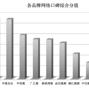 数据显示,中青旅综合网络口碑位居中国国旅及中旅之后,处于十大旅行社品牌中的第三位。