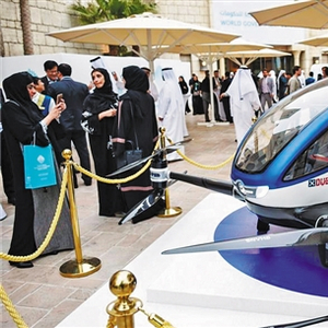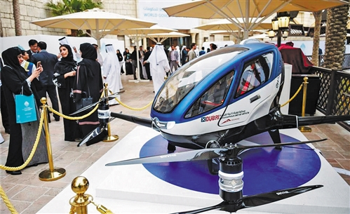 今年2月15日,迪拜,在第五届世界政府峰会上,亿航与迪拜交通局联合宣布共同推动将亿航184引入迪拜世界最智慧城市交通运输系统。(资料图片)