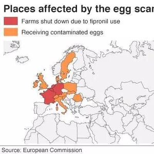 根据资料,人类大量进食高浓度氟虫腈一段时间后,会损害肝脏、甲状腺和肾。德国各州已经开始彻底下架这一批受污染的鸡蛋,著名廉价超市艾尔迪更是把所有鸡蛋都撤下柜台,等待进一步的检验。而受到污染的荷兰养鸡场,则开始扑杀数以百万计的受到污染的鸡,据荷兰当地媒体报道,受到影响的养鸡场可能高达147家。