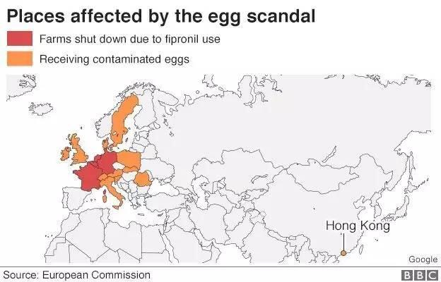 8月4日,香港食物安全中心在市面抽取不同批次的两个荷兰进口鸡蛋样本检测,发现这种“毒鸡蛋”也流入了香港。