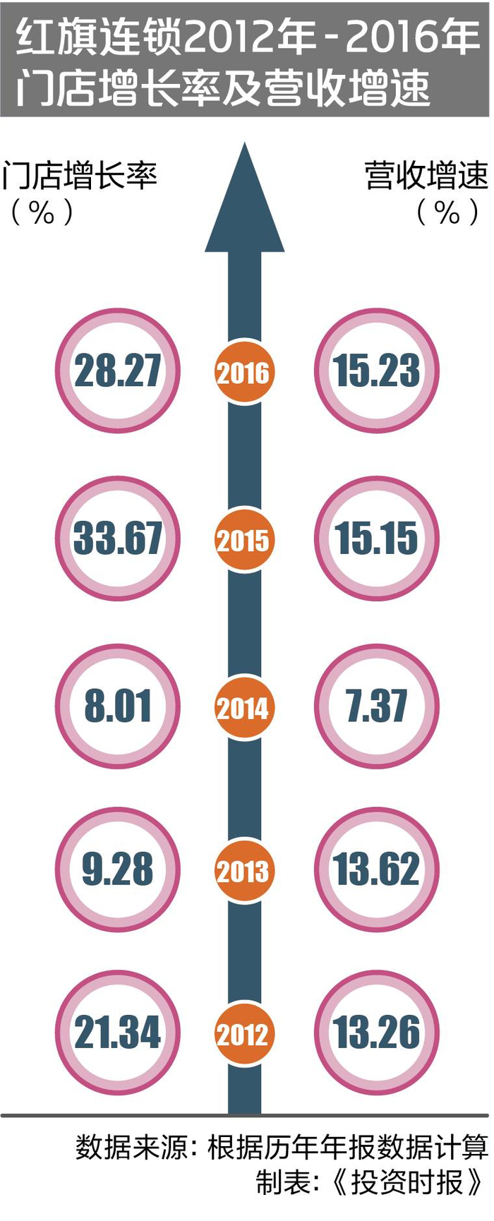 红旗连锁上市五年店铺翻倍 旺丁不旺财单店半年仅赚3.6万