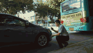 ▲一位女司机车子撞到了护栏导致爆胎,肖正阳在做过案件记录后,帮司机换好了轮胎,并一再嘱咐:“备胎不能用太久,为了保障安全得尽快去维修。”