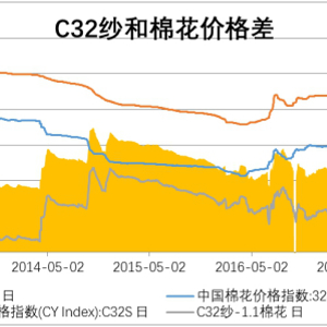 2014 年 3 月份之前,因为中国棉花的收储政策,看上去 C32-棉花的价差低于 5000元,这个加工费造成没有配额的中小型纺织厂的大量关闭,而能够生存下来的纺织厂,因为有进口棉配额的原因,加上拍储时得到不同比例的进口配额,实际的用棉成本是低于国内棉花价格的。因此,我们参照 2014 年 3 月份以后的国内棉花现货和棉纱的价差关系。为了便于在交易中棉花和棉纱数量的匹配便利,我们将两者的价差优化成 1:1的关系,直接采取 1 吨 C32 棉纱-1 吨3128棉花。2014 年 3 月以后,这个价差的低位在6700 元/吨,高位超过 8500 元。2014年,国内棉花从收储向直补过渡,棉花市场氛围极度悲观,中小纺厂关闭已经告一段落,因此棉花价格的下跌给予纺织厂的高利润,短期因为纱的有效产能没能快速释放,因此维持了大约 6 个月的高利润阶段。而 2015 年春节后,相对稳定的 C32 纱和棉花的价差主要在 6600-8000 的区间,中位数 7300 元/吨。