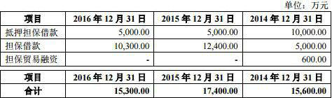 南卫股份短期借款主要包括抵押担保借款、担保借款、担保贸易融资。2014 年至2016年抵押担保借款分别为10,000.00万元、5,000.00 万元、5,000.00 万元;2014 年至2016年担保借款分别为5,000.00万元、12,400.00 万元、10,300.00万元;2014 年担保贸易融资600.00万元。