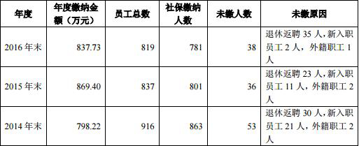 招股书显示,南卫股份2014 年至2016年公司及控股子公司在册员工总数分别为 916 人、837 人和 819 人。