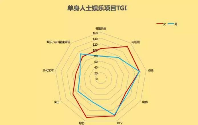 哇果然单身男女对娱乐项目的兴趣远高于平均水平。毕竟一个人,让自己开心起来最重要嘛。