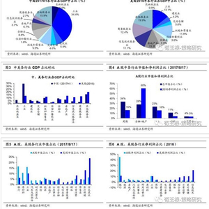 服务业在中国GDP中占比52%,而在美国占比约82%.对比中、美各行业在GDP中的占比,可以非常详细的看到中美经济结构的巨大不同。中国工业类行业GDP占比达34%,而美国仅13%,农林牧渔行业在GDP中占比为6%,而美国仅占0.9%。并且美国的服务业占比明显高于中国,中国、美国各细分服务业在GDP中占比分别为:房地产(6.7%、13%)、金融(8.8%、7.3%)、信息技术(3.7%、11%)、商业服务(2.7%、12.4%)、批发零售(9.5%、11.8%)、住宿餐饮(1.8%、3%)、其他服务业(教育、医疗、休闲娱乐等)(16%、20%)。即除金融以外,美国大部分细分服务业如地产、信息技术、商业服务、批发零售等产业的GDP占比均远超我国。根据2季度经济数据,我国服务业(第三产业)在GDP中占比52%,美国并未公布详细的服务业占比,但根据2016年各行业在美国GDP占比推算得出,服务业在美国GDP中占比约81.8%,占比远超我国服务业GDP占比。