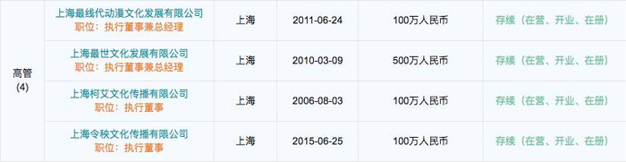 近两年来,尽管没有新作品面世,郭敬明商业拓展的脚步一刻不停。天眼查数据显示,郭敬明是6家公司的法人代表,5家公司的股东,4家公司的高管。