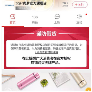 日本“tiger虎牌”发布打假公告:京东自营售假