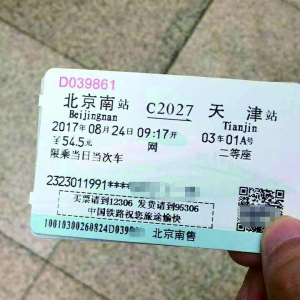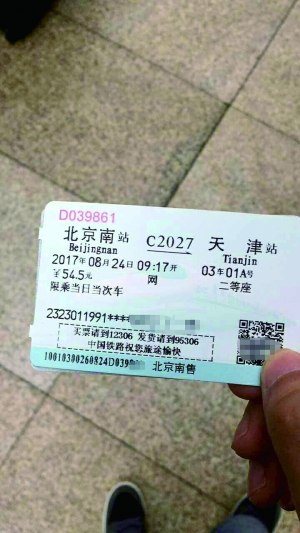 随后丁先生找到咨询台询问为何会有这样的情况,对方表示近日京津之间的列车有个别被取消,并要求丁先生改签或退票。“但是因为我是去天津赶飞机的,当时已经耽误好一会儿,改签又没办法改到最近的车次。最后没办法就拿着这张票上了一趟时间比较接近的车,一路站到了天津。”
