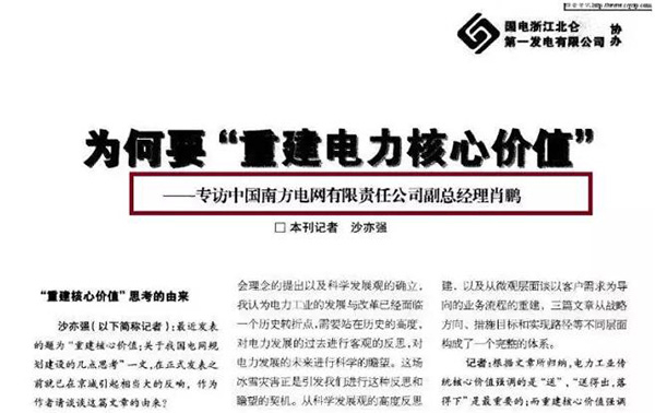 他对电网建设进行了反思。认为电力企业必须从以人为本的高度重新审视自己的核心价值体系,将核心价值真正落实在终端客户利益上。