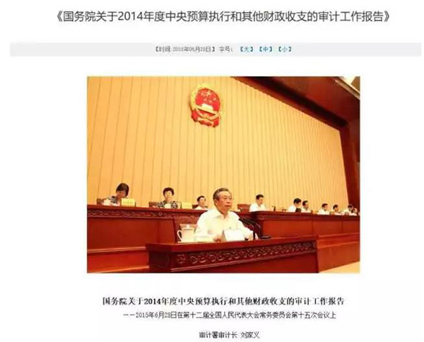 2015年6月审计署网站发布了《国务院关于2014年度中央预算执行和其他财政收支的审计工作报告》。