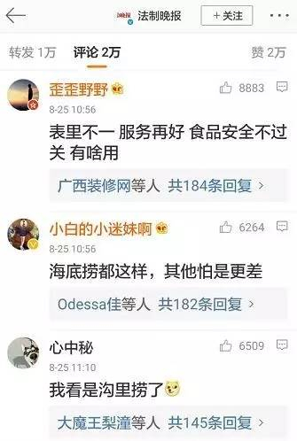 而当一个餐饮企业的食品安全出现了问题,居然还有如此多的自来水站出来为之洗地,不知道这应该算是企业的幸事,还是社会的悲哀。