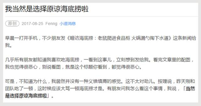 但不乏支持者赤裸裸地表示,“当然选择原谅海底捞啦”,其中不乏颇有号召力的自媒体人。