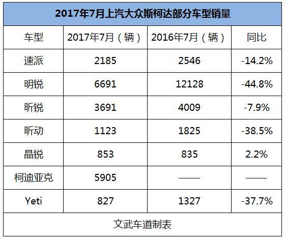 而在SUV方面,斯柯达的产品线严重匮乏。Yeti在7月份仅销售827辆,同比下滑了37.7%。而今年刚刚上市的柯迪亚克在7月份销量达到5905辆,距离同级的竞品仍有不小差距。