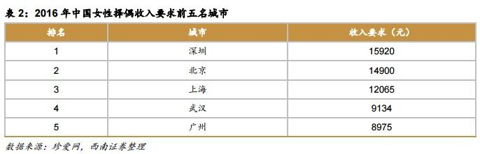 3、经济收入要求水涨船高:这五个城市对男性收入要求最高
