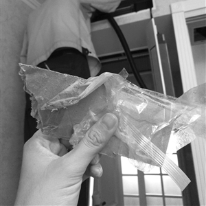 郭先生家中次卧空调破顶,换新机后仍有异味。空调出风口里放置的杂物,一年多后才被发现,说明书有水汽且铁片已生锈 郭先生供图