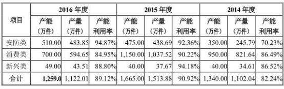 报告期内,由于受生产场地不足限制,为满足安防类光学镜头迅速增长的市场需求,公司于 2016 年减少了消费类镜头的生产员工配置以增加安防类光学镜头的产能。