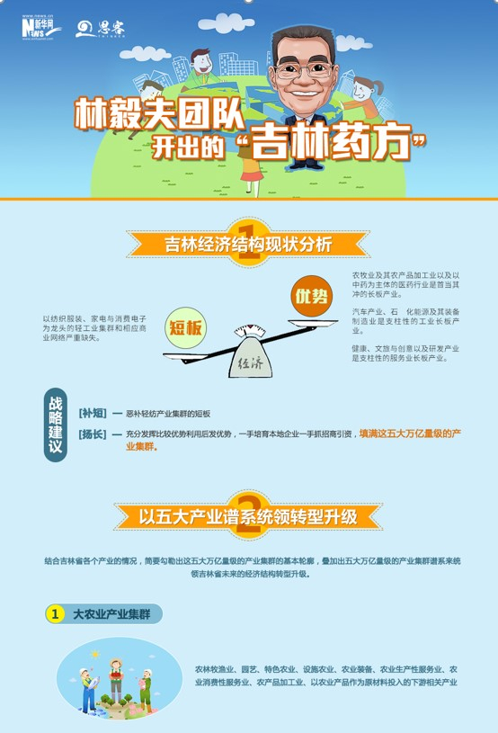 近日,林毅夫团队为吉林省经济转型升级开了一剂“药方”,提出应转变重工业赶超战略思维,率先弥补轻工业短板。常言道“扬长避短”,此次“扬长补短”的新思维可谓是一大创新性建议,引发社会关注。此外,“药方”中还有更多开创性的建议,下图将为你简略概述↓↓↓