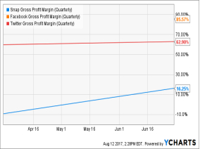 Snap现在还没有一个令人信服的盈利模式,这是商业计划中很重要的组成部分。与Facebook和Twitter不同,Snapchat app依赖于昂贵的第三方托管服务。Snap的毛利率仅为16.25%,与其他社交媒体类股相比是很低的水平。