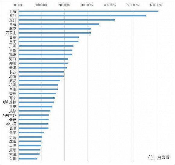 一线城市里,上海涨幅高达610%;作为二线城市的厦门,涨幅也高达559%。在这些地方,十年前一套100万的房子,如今已经升值到700万左右。