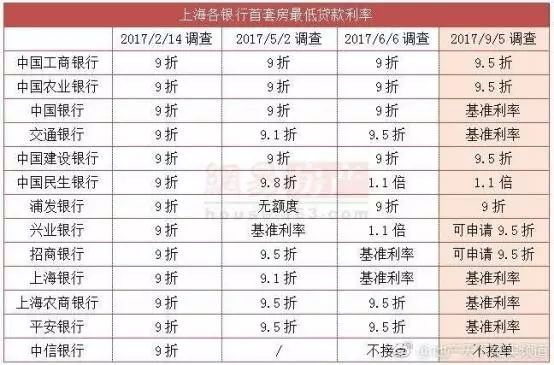在6月初的第三次调查中,民生银行和兴业银行已经首套房贷利率调升至1.1倍,招商银行和上海银行调升至基准利率,其余银行基本维持五月初的利率水平不变。