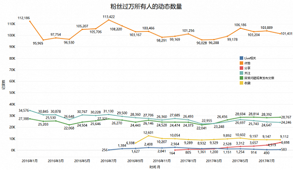 从上图可以看出,从2016年年初以来,大V整体的回答和文章数量虽然略有起伏,但总体还是稳定的。