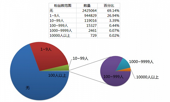 在这3,507,426个用户中,粉丝超过1000人的,只占到了万分之九,粉丝上万的则只有万分之二。并且,零关注、零提问、零回答的“三零用户”共2,092,271人,占全体用户的59.65%。