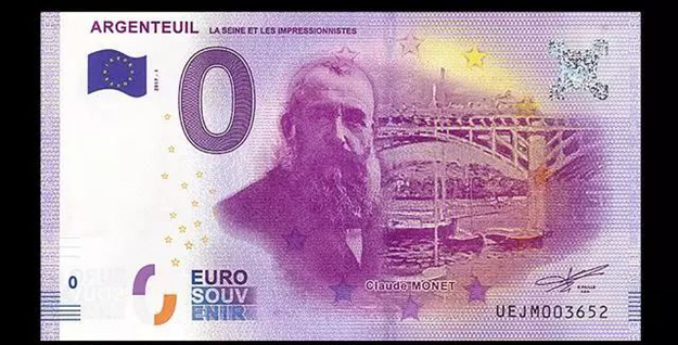 2017年,画家莫奈与塞纳河艺术桥0欧元纪念钞。