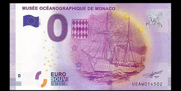 2014年,摩纳哥海洋博物馆0欧元纪念钞。