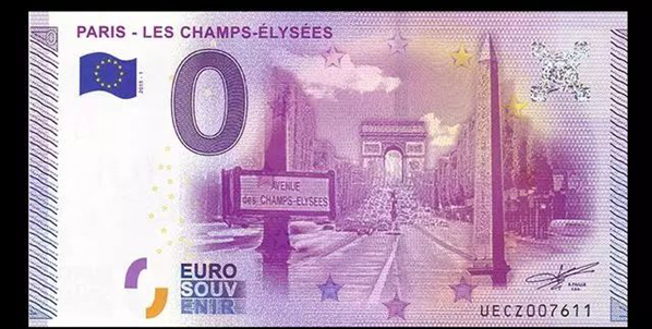 2015年,巴黎香榭丽舍大道0欧元纪念钞。