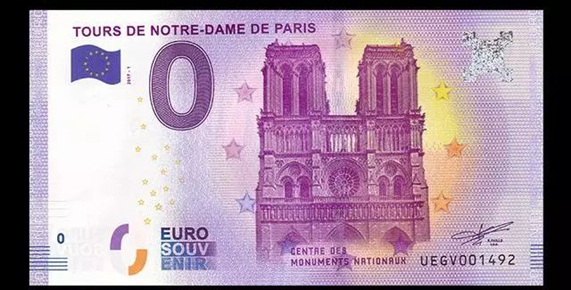 2017年,法国旅游景点系列,巴黎圣母院0欧元纪念钞。