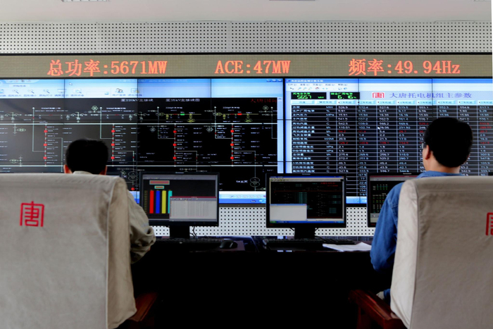 在大唐托电机组控制室的检测屏幕最上方,实时可见的各项指标的排放情况。一旦超标,数值就会由绿色变为红色。这些数据也已经和国家的环保平台进行对接,实时传输到平台上。