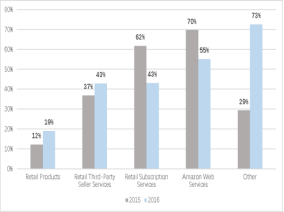 图表3:收入增长率(%)比较,亚马逊VS同业