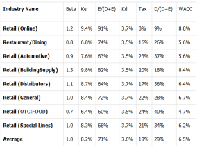 4.保守的融资策略和较低的风险配置。虽然亚马逊的杠杆率已经上升,但2.87%的债务成本比其他在线零售商要低得多。(表10)此外,该公司未来巨大的增长潜力和盈利能力完全可以支撑这些债务。此外,亚马逊高于平均水平的债务比率使其能够享受竞争的税收优势,并最终将WACC降至5.8%,低于在线零售行业的平均水平(8.8%)。