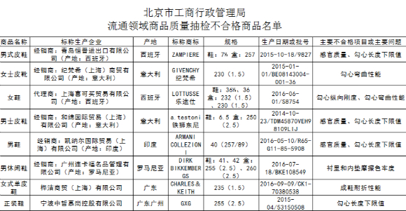 北京商报讯(记者 吴文治 王维祎)9月6日,北京市工商局(以下简称“市工商局”)官网发布“北京市工商局流通领域成人鞋类商品质量抽检结果公示”。其中,纪梵希、阿玛尼等品牌鞋产品因质量不合格被通报。