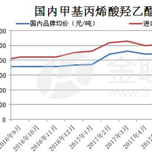 受到原材料近期国内供应层面偏紧影响,近期国内甲基丙烯酸羟乙酯生产企业开工负荷情况相对保持偏低水平,国内甲基丙烯酸羟乙酯整体社会库存维持低位。另一方面,受到欧美区域需求持续向好,且美国飓风等因素影响,国内甲基丙烯酸羟乙酯进口货源量也并不充足。且赢创等国内甲基丙烯酸羟乙酯生产企业近期产品以供应其核心客户为主,市场供应量稀少,更是加剧了我国国内甲基丙烯酸羟乙酯市场价格持续攀涨的氛围。