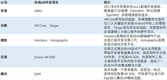 表:巨头争相布局AR情况
