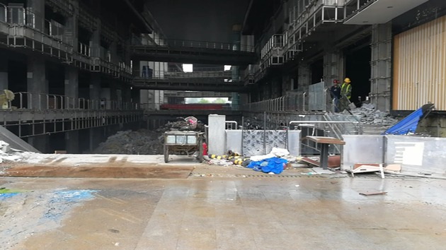 西安市曲江新区核心地带,西安地标建筑大雁塔南侧,昔日繁盛的购物中心秦汉唐广场内正在重新施工。