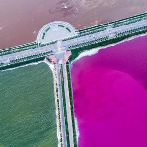 近日,随着秋分季节将要到来,山西省运城市气温的不断下降,位于运城市内的盐湖也呈现出不同的色彩,跨湖大道两侧的盐湖水面一侧呈绿色,一侧呈玫瑰红,摇身变成“鸳鸯火锅” 。这一现象是怎么产生的呢?经检测,原来是杜氏盐藻在“作怪”。