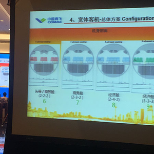 根据陈迎春演讲现场展示图片,C929远程宽体客机的头等/商务舱的座位排布为2-2-2,商务舱的座位排布为2-3-2,经济舱的座位排布为2-4-2或3-3-3。