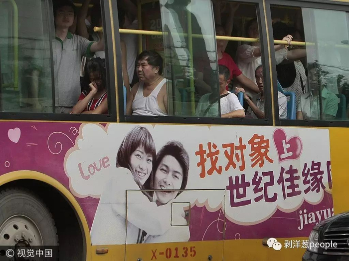 2010年8月28日,南京街头公交车车身上的世纪佳缘网站广告。真心想找对象的,就能成了吗