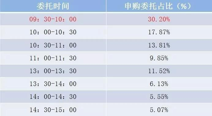 国信证券分析了所有客户2017年以来的中签记录后发现,9:30-10:00的申购中签占比在全天中是最高的,而上午的申购中签占比全天达72.17%。那么这个9:30-10::00这个时间段是打新的最佳时刻么?