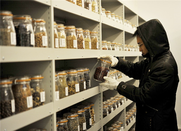 中科院昆明植物研究所一座品字形大楼的地下一层,有五个零下20℃、湿度15%、总面积220平方米的冷库。经过萌发试验的种子被密封放入罐中,70%以低温保存,椰子一类“顽拗型”种子则用到液氮的超低温保存技术。