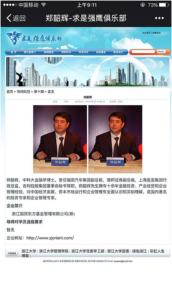 被举报人九州量子董事长郑邵辉,也同样看点十足,他曾任UT斯达康通讯有限公司商务部经理、浙江吉利控股集团董事会秘书兼人事行政总监、德邦证券有限责任公司副总裁等职务。目前,郑邵辉还任职神州量通董事、神州量子董事长、毅卓资管执行董事兼总经理、浙江国贸东方投资管理有限公司副董事长等职务。