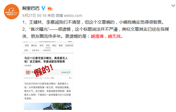 其实,早在今年6月份,阿里巴巴官微就对此公开发文“打假”,类似文章其实已经在各媒体、朋友圈流传多年。并表示,“遗憾的是:越澄清,越无效。”