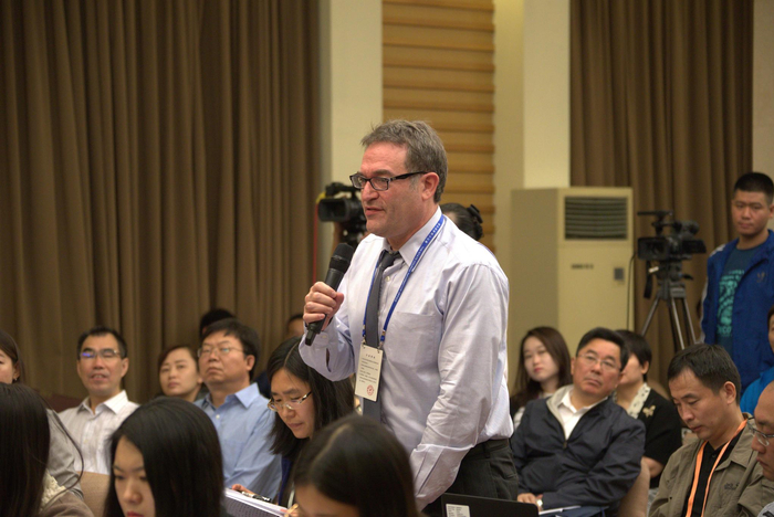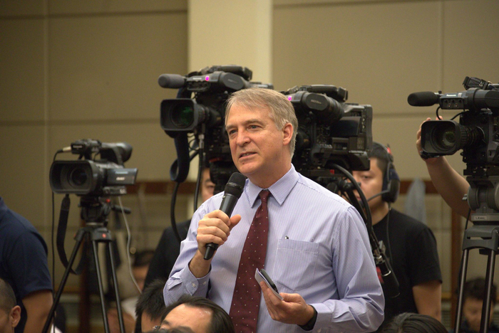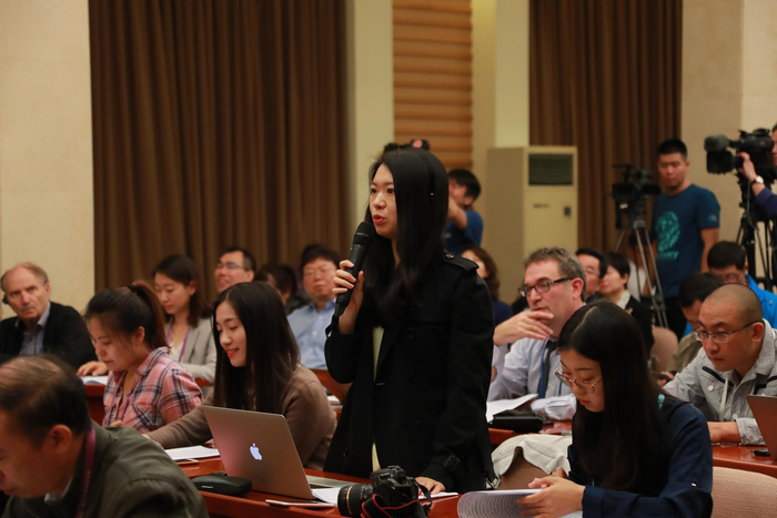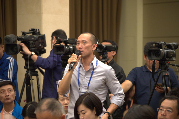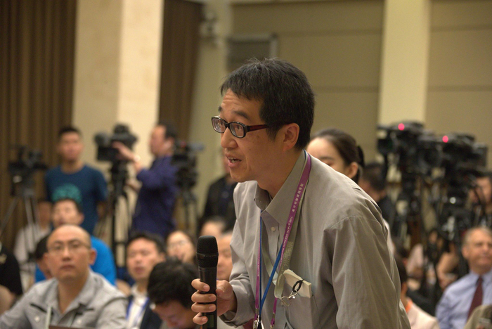 中国国际电视台CGTN记者提问(吴岚 摄)