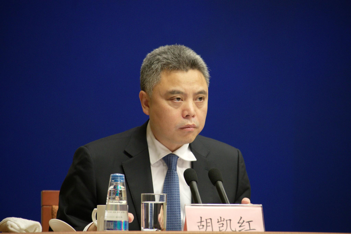 国新办新闻发言人胡凯红主持发布会(吴岚 摄)