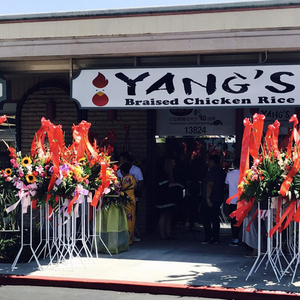 “杨铭宇黄焖鸡米饭”(YANG’s Braised Chicken Rice)9月初在美国加州的Tustin市开设了第一家店铺。这里只有一道菜式,顾客可以选择正常(不辣)、正宗(微辣)、加辣三种口味的黄焖鸡米饭,据说所有酱料都是在中国调好,再空运到美国的,目的是保持原汁原味。这样的一份套餐售价9.9美元,折合人民币约66元,大约是史上最贵的黄焖鸡米饭。
